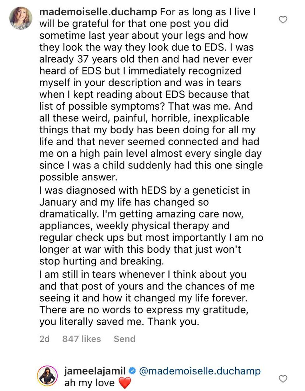 Many who are living with EDS thanks Jamil for educating others.