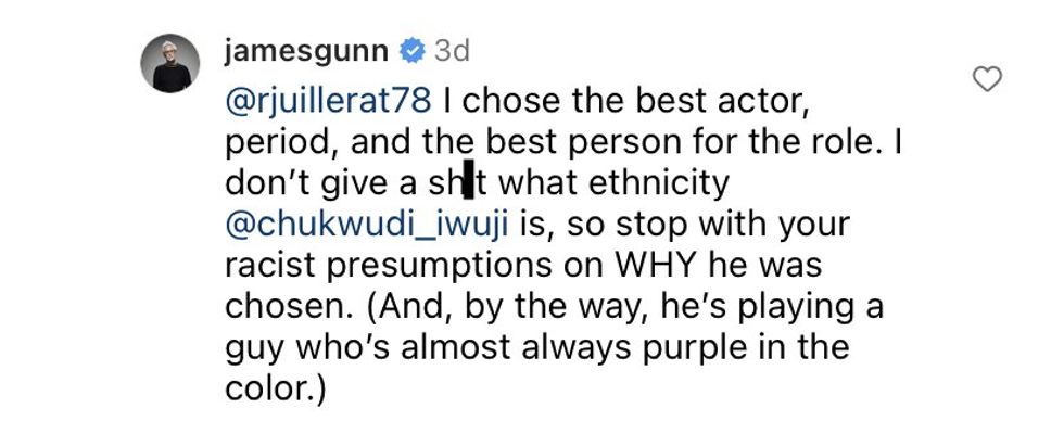 And several agreed with Gunn's casting decision as well as his stance on the commenter's "racist presumptions."
