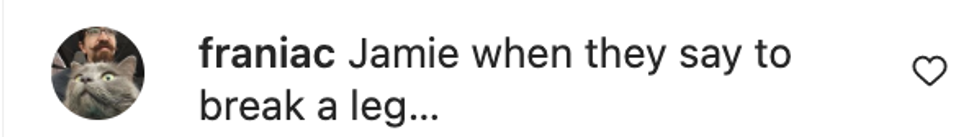 Yep, it would seem that our dear JLC injured herself jumping for joy after her incredible win. Worth it.