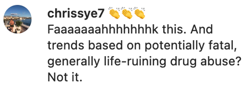 In the video, Jamil was even more to the point, calling out the deprivation and food issues inherent to a "heroin chic" look unnatural for most people and one based on the horrifying ravages of an often deadly drug, no less.