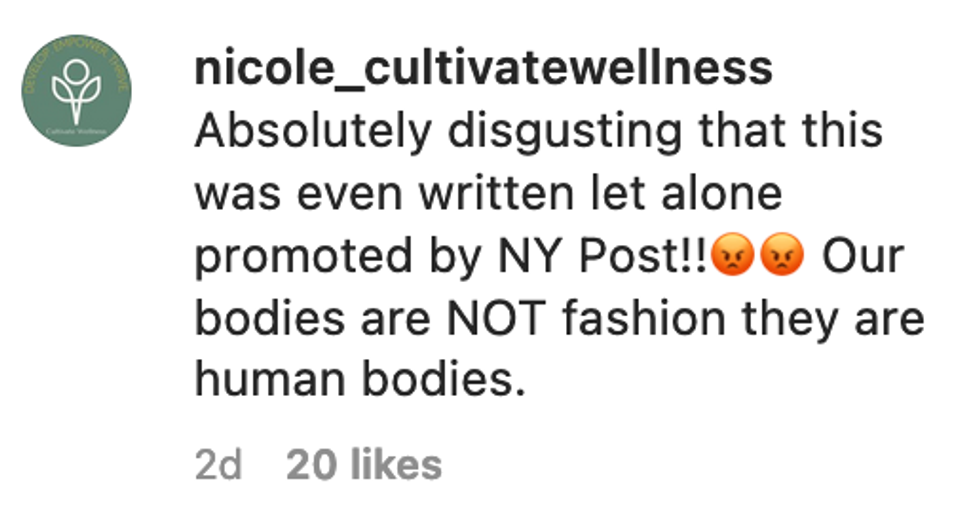In an Instagram video, she slammed the Post for its story and its headline heralding "heroin chic" as the hot new thing, calling out the rise in eating disorders during the 1990s many attributed to the trend.