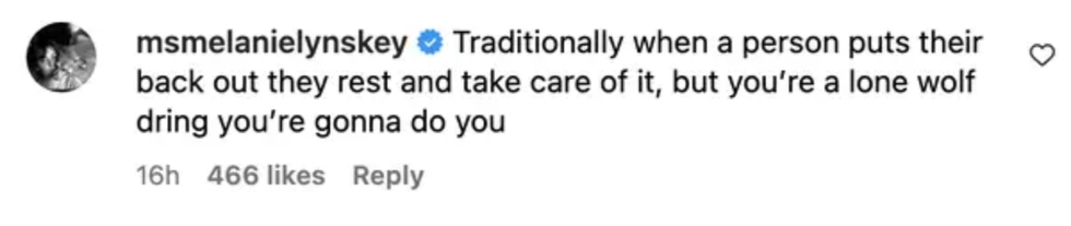 "Traditionally when a person puts their back out they rest and take care of it, but you're a lone wolf dring you're gonna do you."
