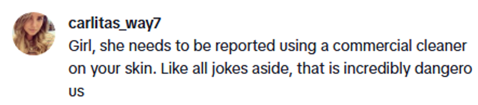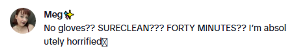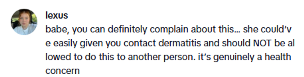 When it was finally time to remove the dye, the stylist struggled to remove the stain from the TikToker's skin or clean the excess from her eyebrows, so she aggressively rubbed them and used an all-purpose cleaner that was meant to clean the salon counters, not salon clients' faces.