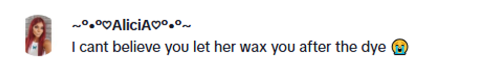 By the end of her story, she was done waxing and used a questionable method to trim the TikToker's eyebrows and pluck remaining stray hairs. Then she turned back to the task of trying to remove more of the hair dye by rubbing the skin that had now been irritated by dye, rubbing, waxing, and more rubbing.