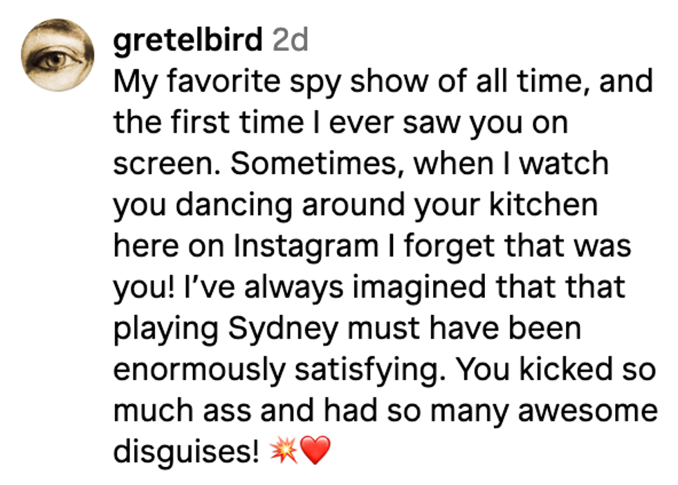 The third and final image was a throwback selfie of the pair, presumably from the set of Alias.