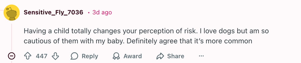 “After I had a kid, dogs became so scary. My son’s going up to it… and it’s almost like I don’t recognize dogs right now. I just see them as a threat.”