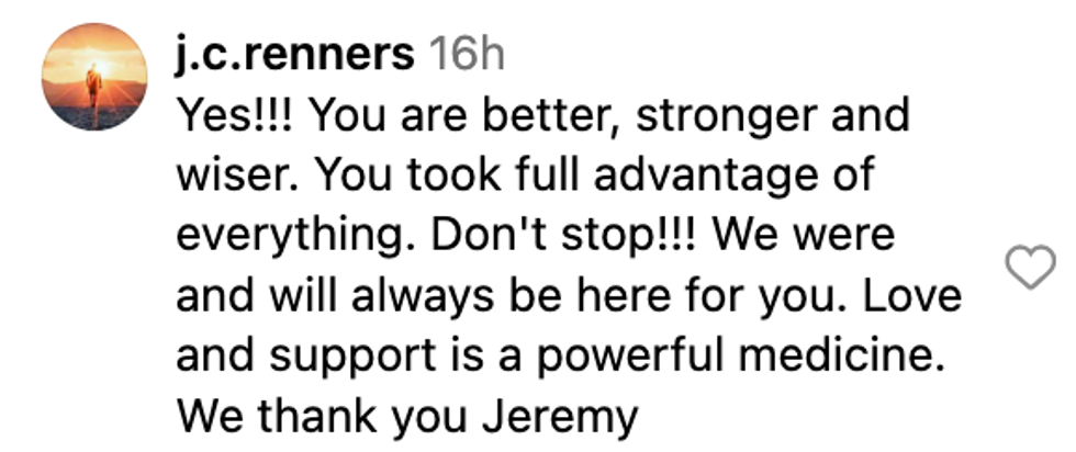 Renner's fans thanked him for sharing his journey and applauded his perseverance.