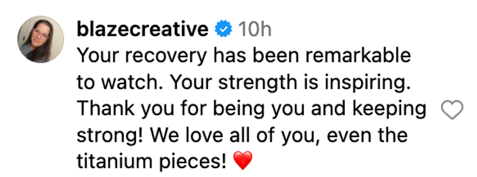 "I feel it’s my duty to do so. Not to squander my life being spared, but to give back to my family, friends, and all of you whom have empowered me to endure. I thank you all. #loveandtitanium"