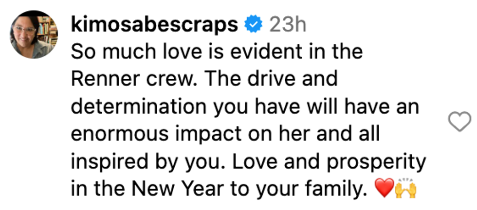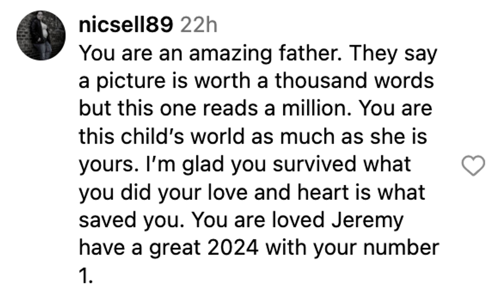 Renner shared a photo of the father-daughter duo embracing, celebrating the new year.