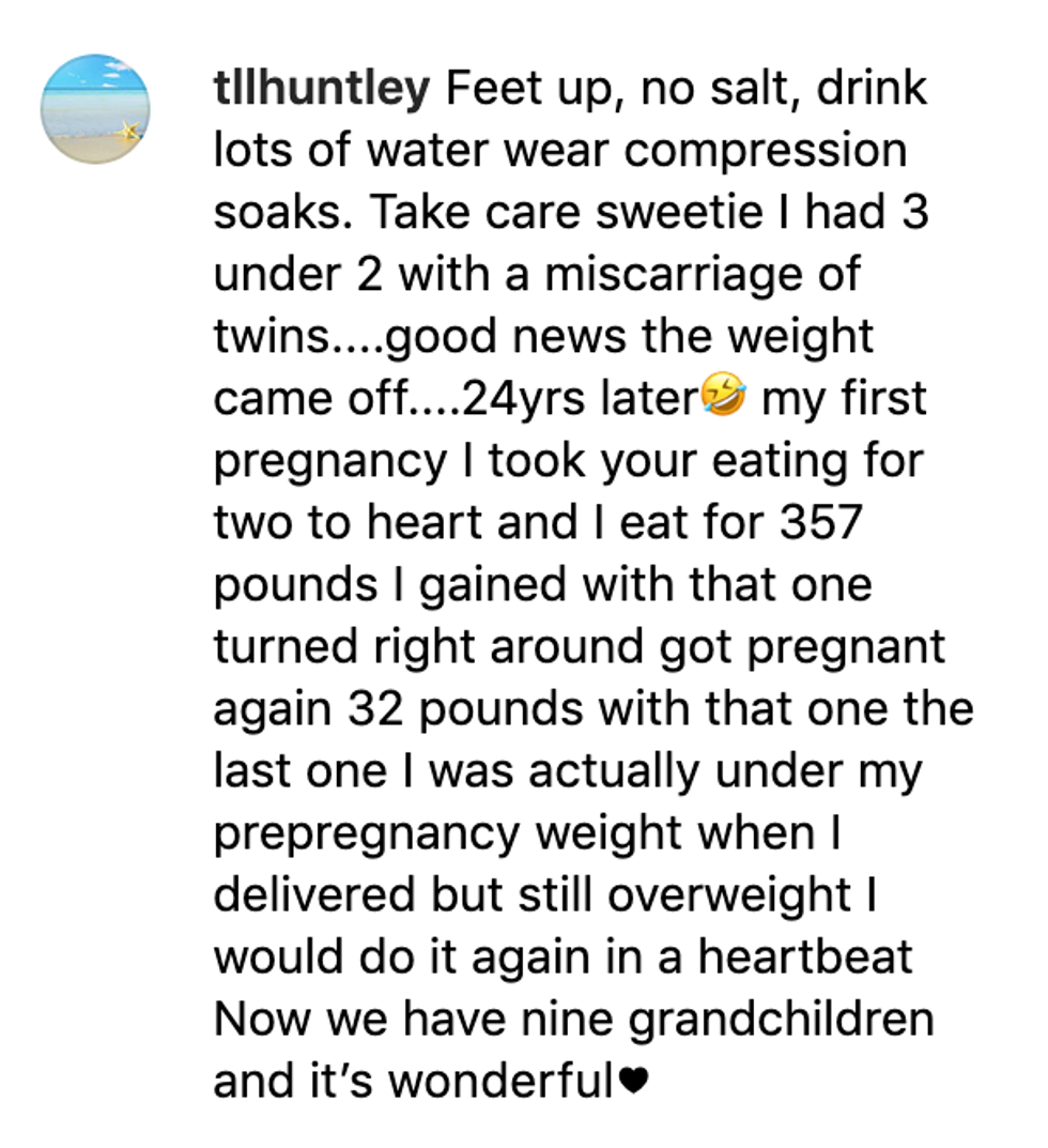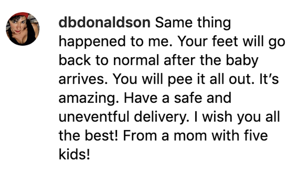 This time, her recent Instagram photo reveals her right ankle has restored back to its pre-pregnancy size. We're assuming her left ankle also experienced the same transformation.