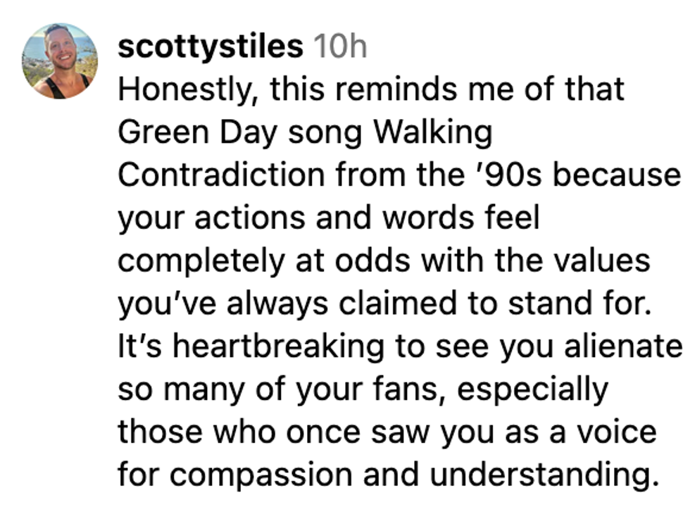 “I am so sorry that I caused pain, especially in my LGBTQIA+ community, because you guys are treasures."