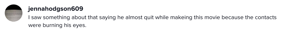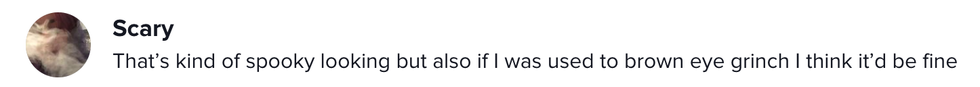 As TikTok user @redcobweb pointed out in a recently viral video, at one point in the movie, Carrey didn't have his contact lenses in that transformed his usual human brown eyes into the green slitted ones of the Grinch.