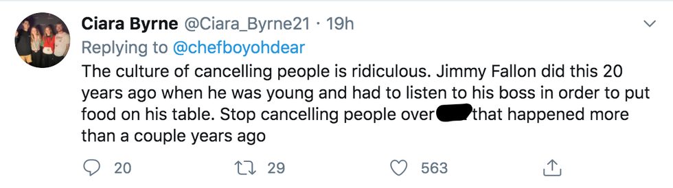 The #jimmyfallonisoverparty hashtag was also hijacked by people who are fed up with the internet's "cancel culture".