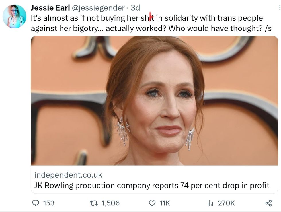 The Harry Potter author—who has unapologetically and incessantly tweeted her intolerance of the trans community—just took a massive financial hit.