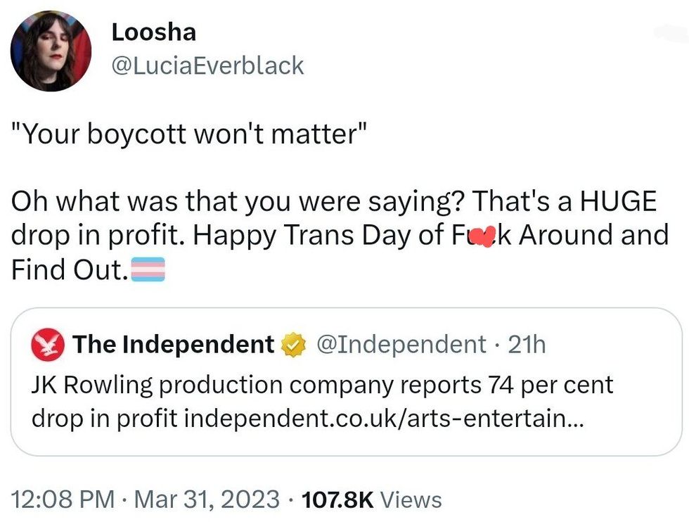 \u201cJK Rowling production company reports 74 per cent drop in profit https://t.co/eUiKkg6az6\u201d— The Independent (@The Independent) 1680273828