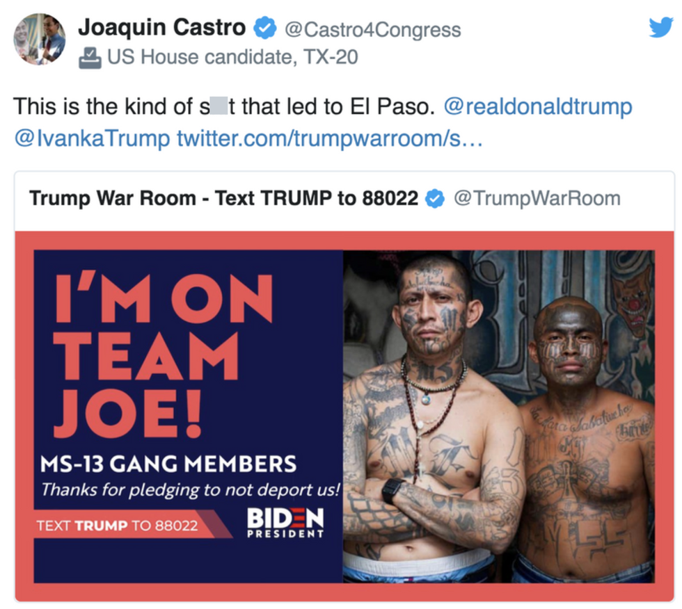 Democratic Texas Congressman Joaquin Castro called out the Trump campaign explicitly for stoking this same kind of fear.