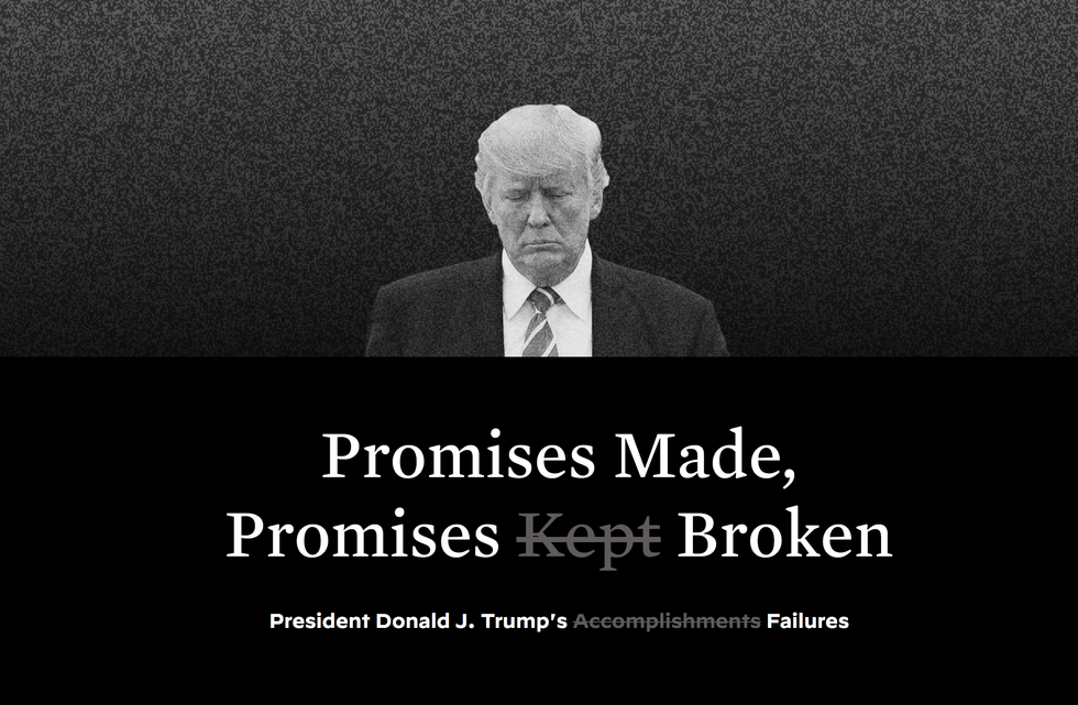 The site also allows viewers to look at what Trump actually promised on these issues, practically all of which have come up short. The previous owner of the domain name was Democratic presidential candidate Tom Steyer, who also used it to denounce Trump.