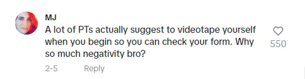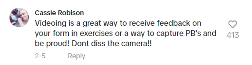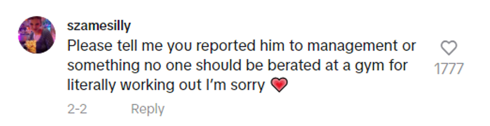 The video was swiftly duetted and stitched on TikTok, with fellow TikTokers showing their support for Em, as well as others reminding gymgoers of the importance of checking a gym's policies on videotaping, as well as fellow gymgoers' comfort of potentially being recorded if they passed through a shot.