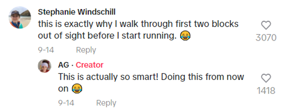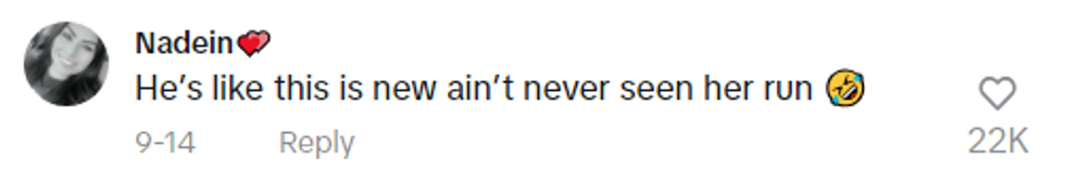 "That one was probably the funniest comment I've seen, because that is like, the true story. If I'm running, you need to be running, too! Don't just watch me run; run with me!"