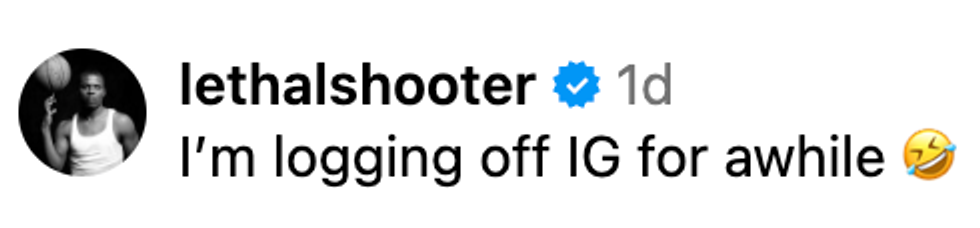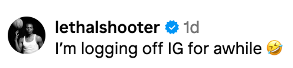 With no explanation in the caption, the part-time WWE wrestler shared a photo of the "Drake the Snake" meme, featuring a photo of Drake's face digitally superimposed on the body of Jake 'the Snake' Roberts holding his pet python over his shoulders.