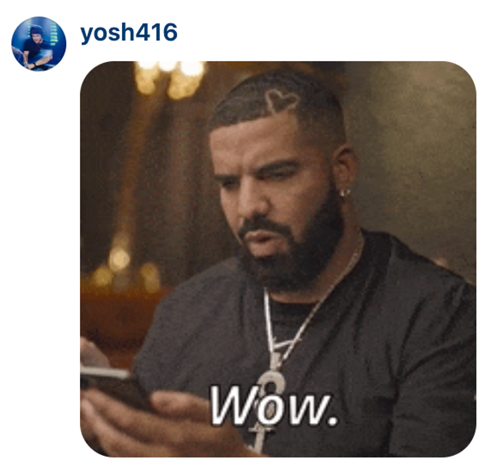 While he gave no official confirmation it was him, Drake did respond with laughing emojis to Kick streamer Adin Ross, who claimed he watched the leaked clip and complimented the music artist on Livestream for being blessed with having a "f**king missile."