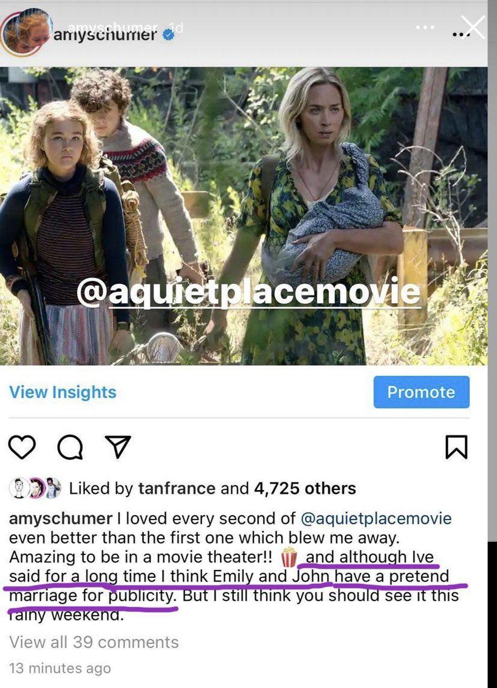 If Amy Schumer was married to John Krasinski, I'd believe that to be a publicity stunt. But him being married to Emily Blunt makes a lot of sense in my world. I definitely see what they'd see in each other.https://twitter.com/enews/status/1399230213918167044\u00a0\u2026— Jimmy Humphrey (Jimmy\u2019s Table Podcast) (@Jimmy Humphrey (Jimmy\u2019s Table Podcast)) 1622497047