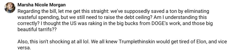 But people weren't buying there was an altruistic impetus for Musk's opposition to the One Big Beautiful Bill.