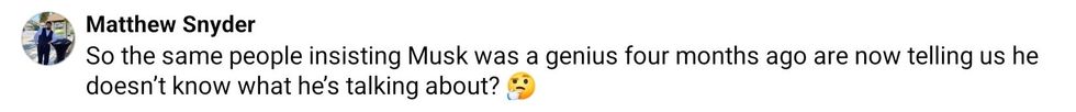The only question was whether Musk just wanted to alter his public perception to bolster his failing business interests or if he was mad some of his government handouts were getting cut.