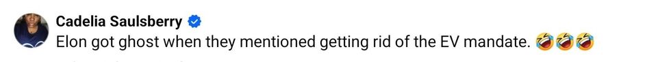 "Elon is missing it, OK, and it’s not personal. I know that the EV mandate is very important to him. That is going away because the government should not be subsidizing these things. It’s part of the 'Green New Deal.' And I know that has an effect on his business, and I lament that."
