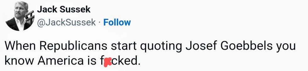 During the hearing, Self decided his best play was to quote infamous Nazi propagandist Joseph Goebbels while speaking to American Sunlight Project head Nina Jankowicz, who testified that Republican persecution complex-driven censorship concerns were pure "fiction."
