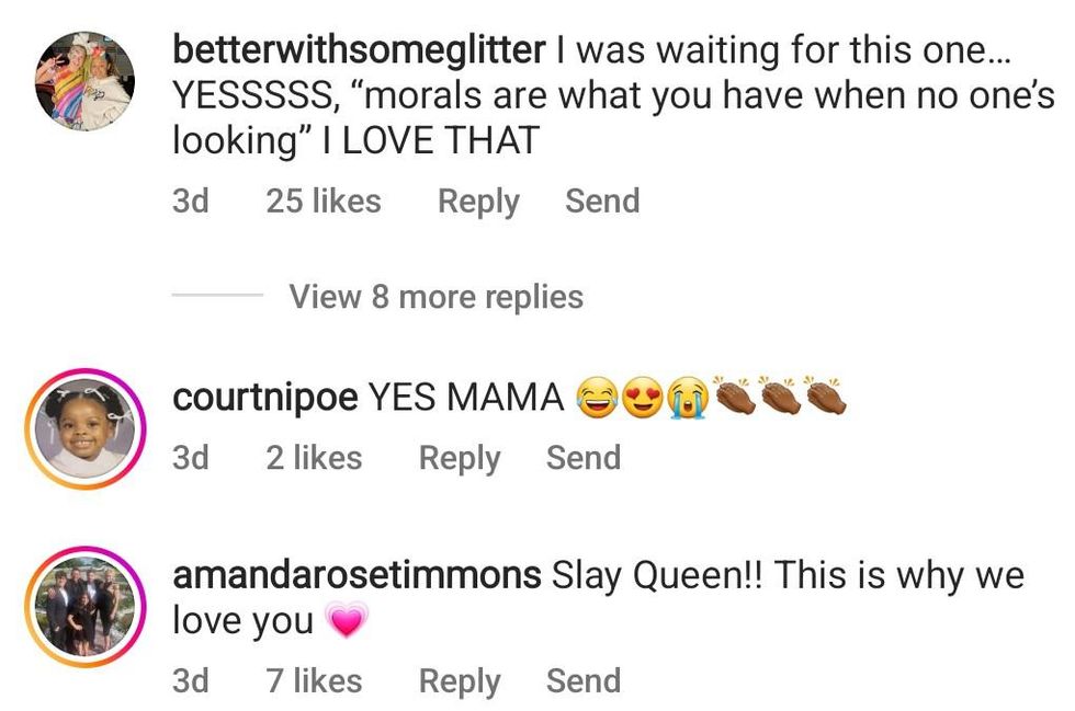 "Real, genuine kindness always goes a long way. It’s super easy to quote a Bible verse when everyone is looking at you but morals are what you have when no one is looking. 🌈.”