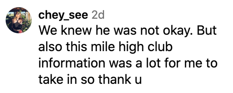 There was, of course, the burning question, because the Mile High Club is one you can only get into with a partner.