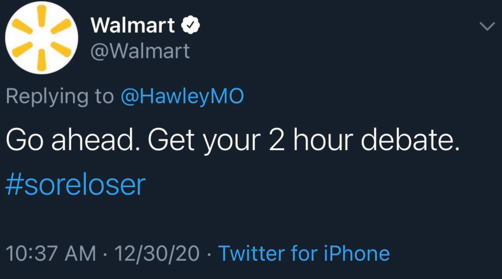 Hawley's statement was widely panned, but one critic was unexpected: Walmart.