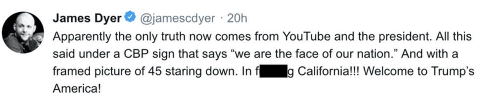 It began when Dyer presented his journalist visa to a Customs & Border Patrol Agent, who responded by calling him a member of the "fake news media," a term practically coined by Donald Trump.