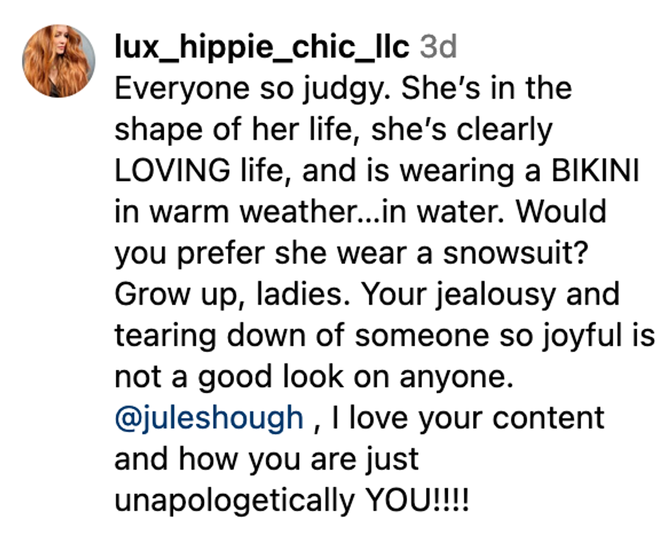 Dancing with the Stars host Julianne Hough responded to body-shaming comments after she posted a playful Instagram video of her enjoying her spa day clad in a snakeskin-patterned bikini.