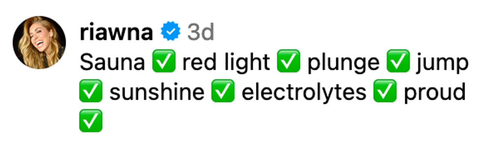 She added that the spa day routine, consisting of a sauna, cold plunge, and jumping, was for her "lymphatic system, which promotes lymphatic drainage" to protect the body from disease and infection.