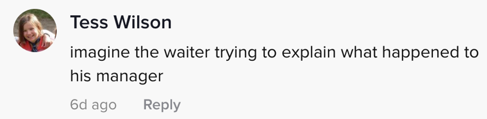 We hope that server can explain to his boss what happened, and accurately, since it's such a ridiculous situation.