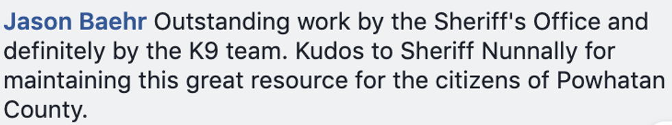 "Maintaining a K-9 program is expensive and very time consuming and that is why many agencies the size of the Powhatan Sheriff's Office do not have one. But incidents like last night's two 8 year old children being lost in the woods are why the Sheriff keeps the program going strong.