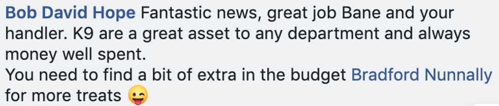 Several people commented on what a good doggo K-9 Bane is, and some called for extra treats.