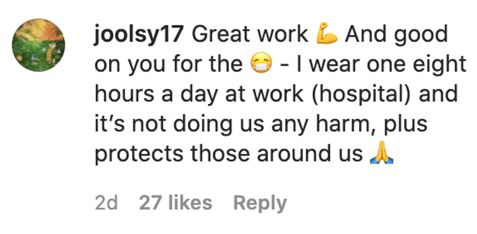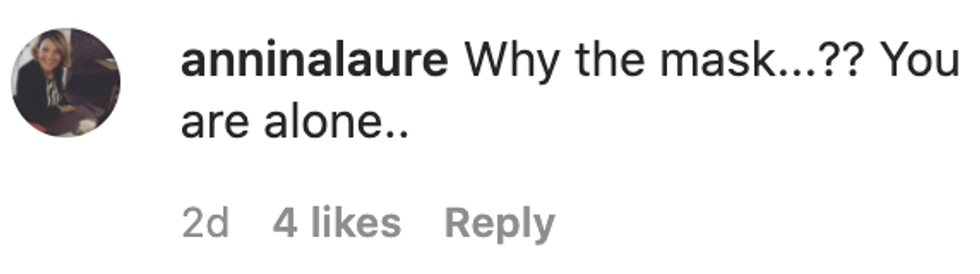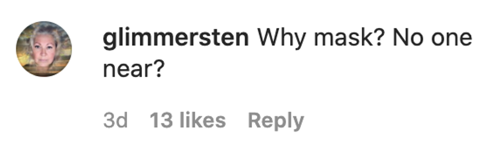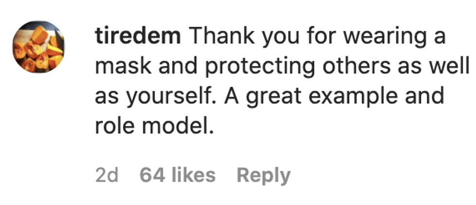 "For everyone and their mask comments. I wear a mask when I'm in an enclosed space around others, which I was."