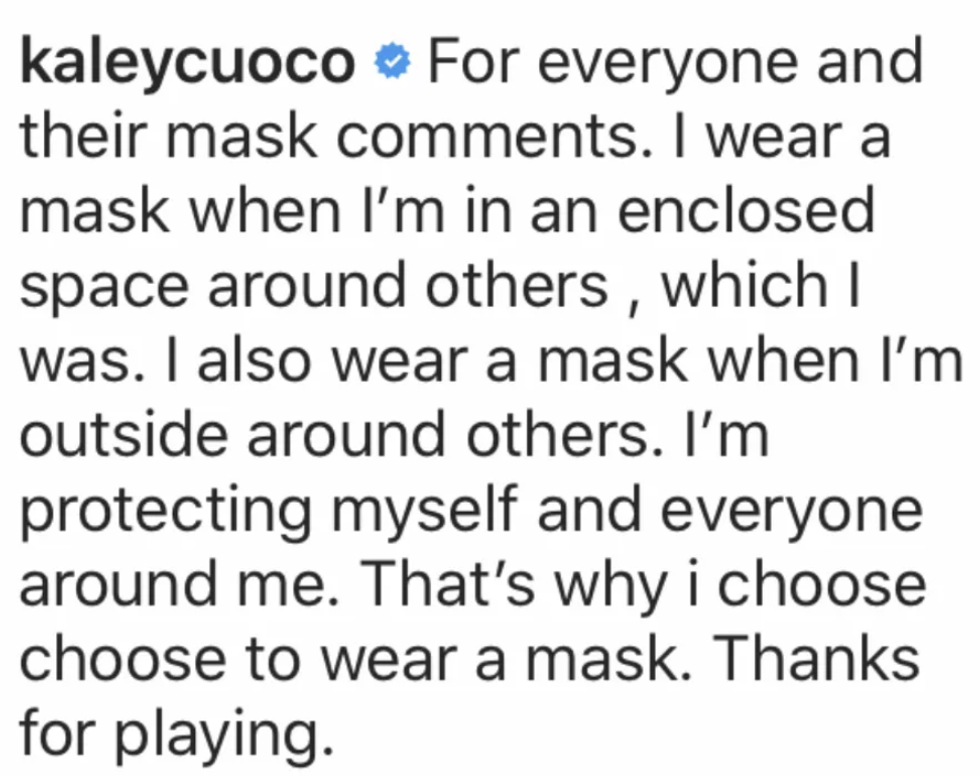 Cuoco responded to the mask comments.