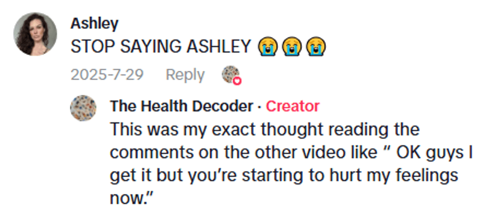 The Ashleys of the comment section felt @junkmotherjess's pain at seeing their name suggested over and over.