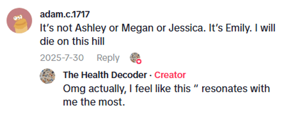 Many votes came in for Ashley, Amanda, and Jennifer, all of which were incredibly popular names throughout the 1990s and early 2000s, giving them the same resonance Karen carried in the decades before.
