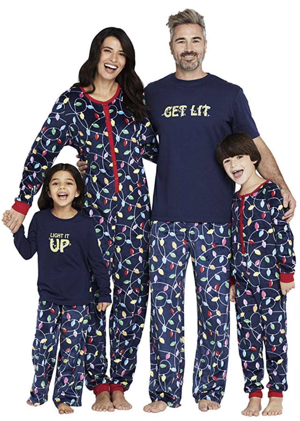 There's pajamas, there's Christmas tree hats, there's what appears to be some kind of cardigan covered in fringe meant to look like a Christmas tree draped around Hudson herself.