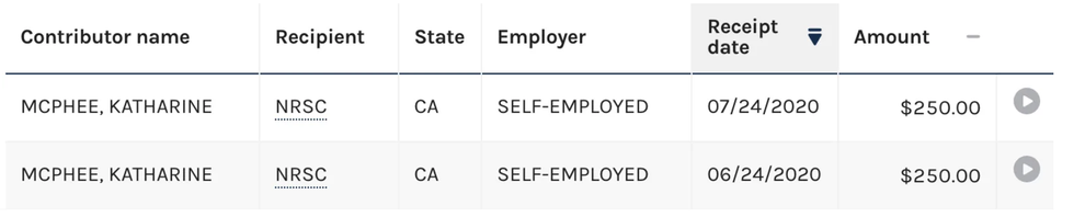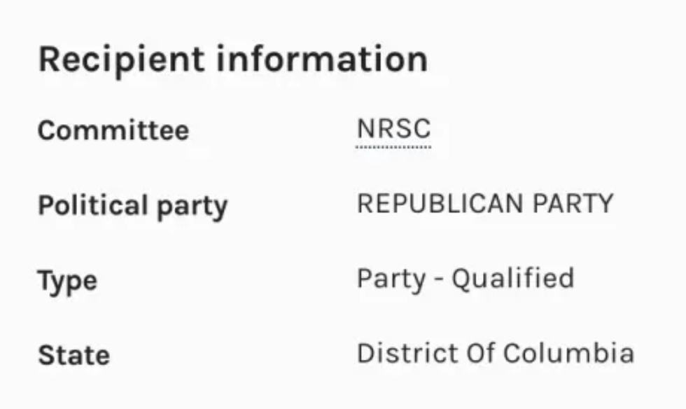 Screenshots from the Federal Election Commission (FEC) database were provided as proof.