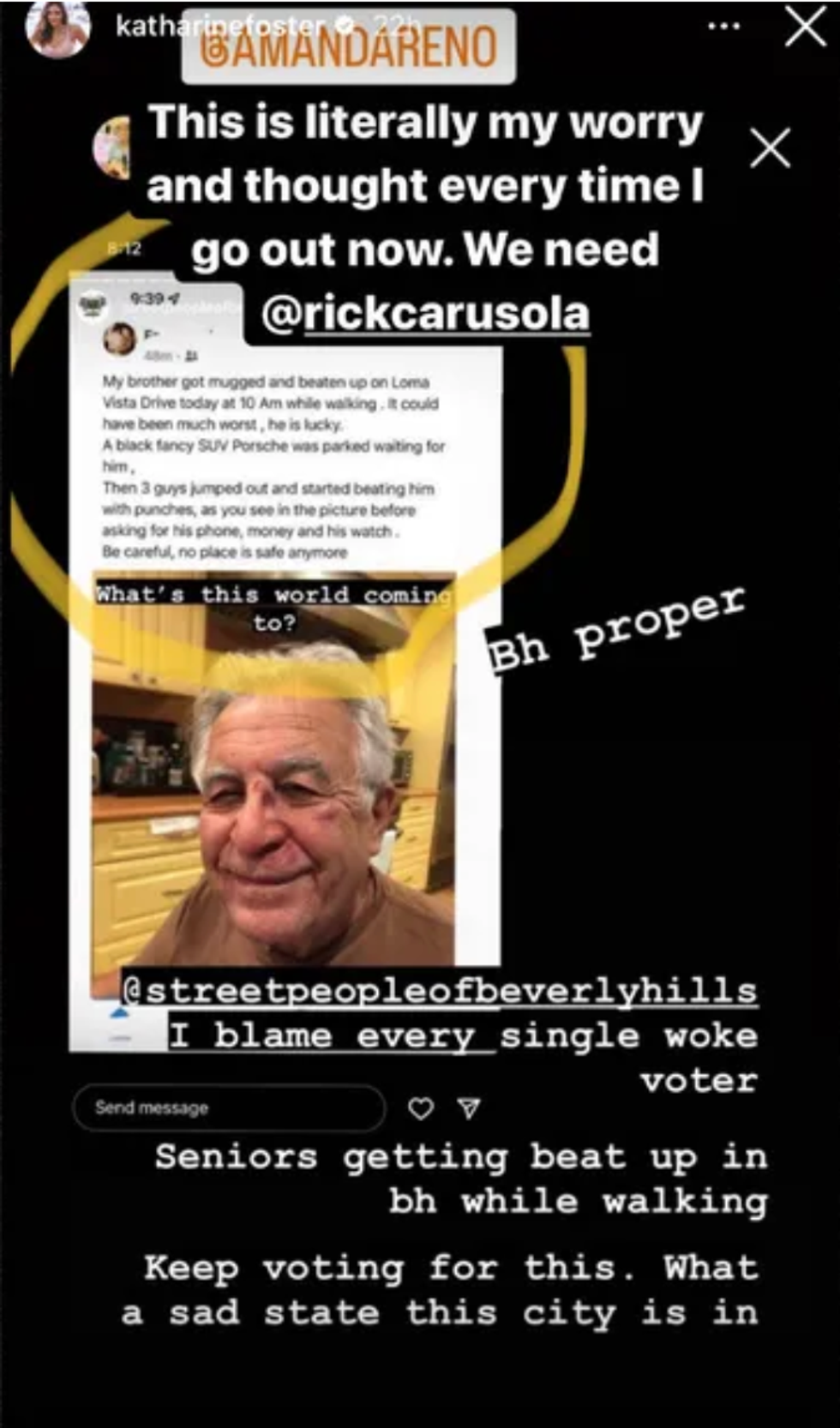 "Seniors getting beat up in [Beverly Hills] while walking. Keep voting for this. What a sad state this city is in."