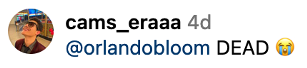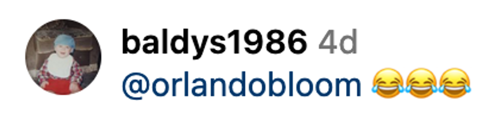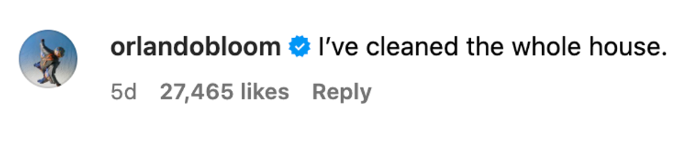 The clip of course went immediately viral, and when Perry then posted photos taken during the filming and recording of the podcast to thank Cooper and the crew, Bloom couldn't help but weigh in.