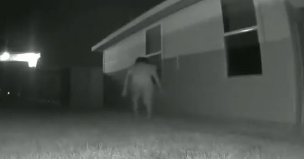 After her son found footprints outside, she decided to install night vision camera's outside her home, pointed at the bedroom window.