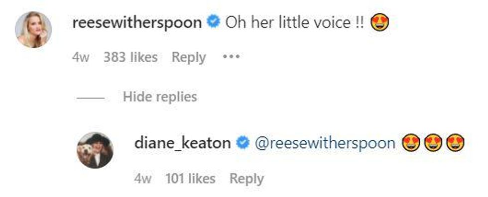 Witherspoon responded in the comments to inform Keaton of her mistake.