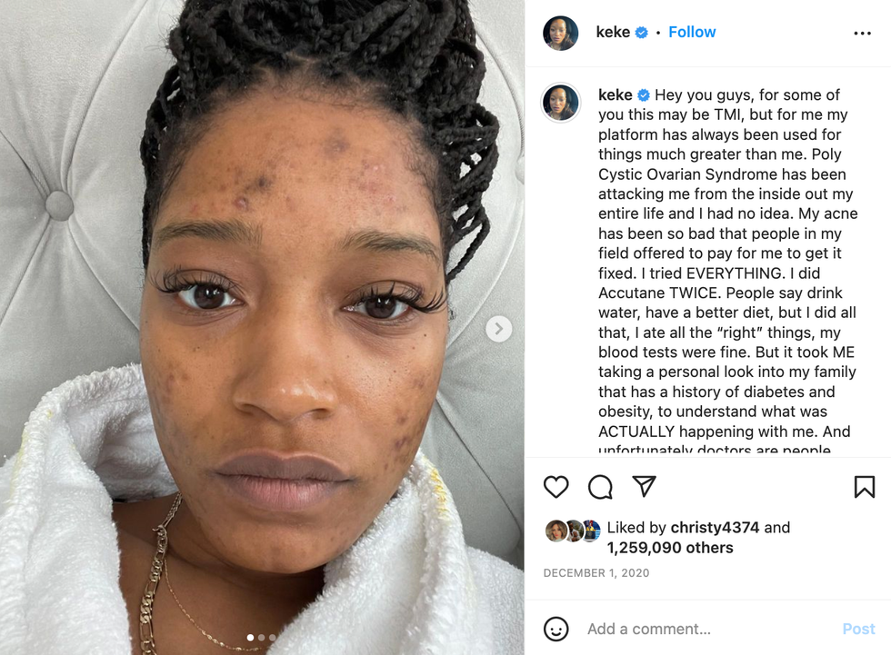 In December 2020, she posted a series of unfiltered pictures on Instagram and wrote she tried everything to help clear her skin with no success.